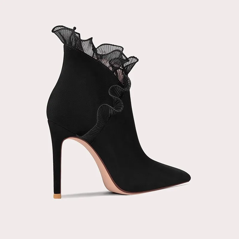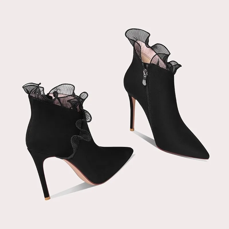 Ladies Fashion Pointed Toe Stiletto High Heels Boots Women Ankle Booties Short Suede Shoes Boots